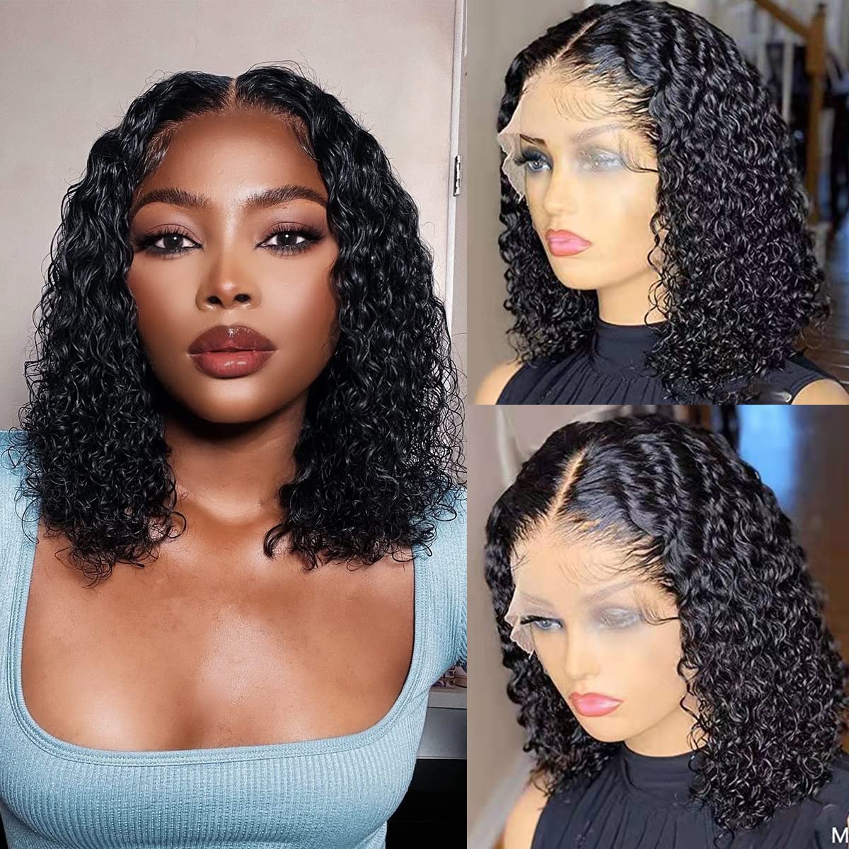 Amazon Com Short Curly Bob Wigs Human Hair Deep Wave 13x4 Transparent Lace Front Wigs For Black Women Glueless Hd Lace Frontal Curly Wigs Pre Plucked Hairline With Baby Hair Natural Black