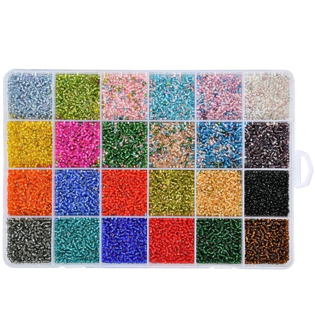 Wowoss 24 Colour Glass Seed Beads For Crafting 24000pcs Small Glass Beads For Jewellery Making Mixed Colour Mini Seed Beads With Box Amazon Co Uk Home Kitchen