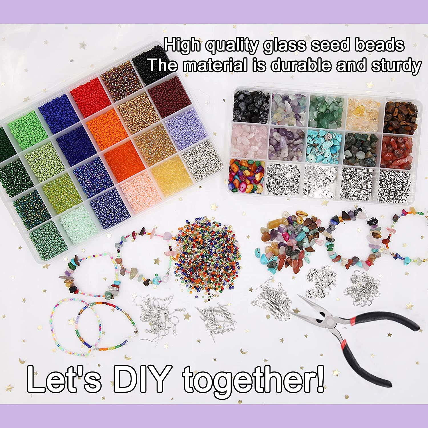 Tarath 14400 Pieces Glass Beads Mini Beads 2 Mm 24 Colours 550 Pieces Gemstone Beads For Threading Glass Beads 11 Colours Diy Jewellery Accessories For Bracelets Necklaces Rings Jewellery Making Crafts Amazon De Home Kitchen